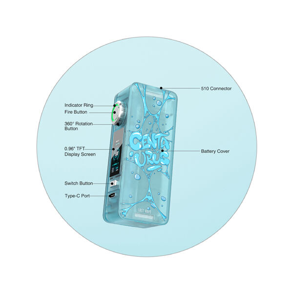 Lost Vape Centaurus N100 Mod je praktický jednobaterkový grip kombinující jedinečný styl a prvotřídní funkce díky osvědčenému čipsetu Quest 2.0. Semitransparentní konstrukce z kombinace polykarbonátu, zinkové slitiny a nerezové oceli působí futuristickým a elegantním dojmem, mod se navíc snadno užívá díky inovativnímu tlačítku s otočným kolečkem a funkcí 4v1. Díky podpoře bateriových článků 21700 nebo 18650 dodá perfektní výsledky a postará se o strhující výkon až 100 W. Se závitem 510 v horní části si potom poradí libovolný atomizér se stejným typem uchycení. Ať jste milovníky DIY vapingu nebo preferujete klasické tovární hlavy, mod si jednoduše osadíte vlastním atomizérem se závitem 510 a můžete se pustit do vapování a vychutnat si veškeré kvality kompaktního modu N100.