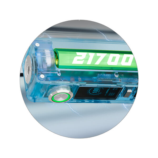 Do kompaktního těla je možné umístit vlastní externí baterii. Mod N100 disponuje slotem pro vložení jedné baterie typu 21700 nebo 18650 s přiloženým adaptérem. Díky slotu pro vlastní externí baterii získáváte obrovskou svobodu při výběru vhodné baterie přesně podle vámi preferovaného stylu vapování.