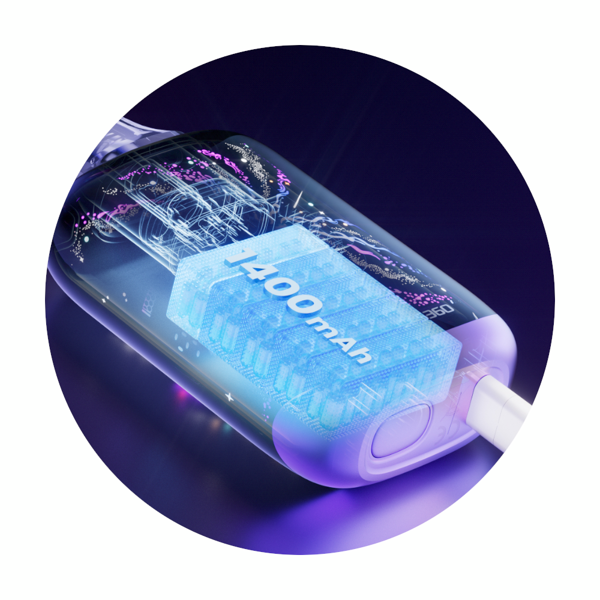 Integrovaná baterie disponuje nadstandardní kapacitou 1400 mAh, díky čemuž se můžeš spolehnout na dostatečně dlouhou výdrž e-cigarety. Silná baterie zajistí delší a plynulejší zážitek bez nutnosti neustálého dobíjení. Navíc můžete trojím stisknutím tlačítka aktivovat úsporný režim, který optimalizuje spotřebu energie. Prodloužíte tak výdrž baterie a získáte ještě více času na vapování.