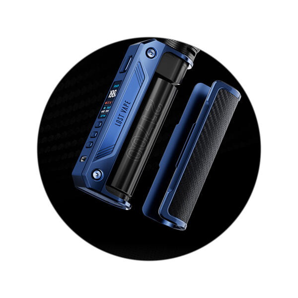 V zadní části modu se nachází kryt pro samostatnou externí baterii. Mod pracuje s jedním článkem typu 21700, díky čemuž je zajištěn stabilnější chod, než kdykoliv předtím. Pokud preferujete standardní baterie typu 18650, potěší vás také přítomnost adaptéru pro použití tohoto typu baterií. Baterii si budete moci dobíjet přímo uvnitř modu díky portu USB-C na těle gripu.