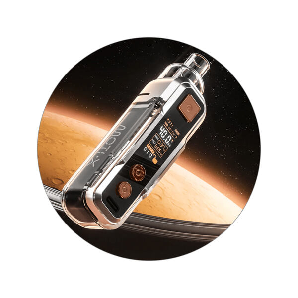 Moti X Pod Kit je výkonný pod systém, který ocení zejména milovníci utaženějšího přímého potahování do plic. Pracuje s výstupním výkonem až 40 W. Výkon je navíc možné regulovat, můžete si ho tak podle potřeby snížit, nebo zase zvýšit. Pro regulaci poslouží dvě velká kulatá tlačítka umístěná přímo pod displejem zařízení na předním ovládacím panelu.