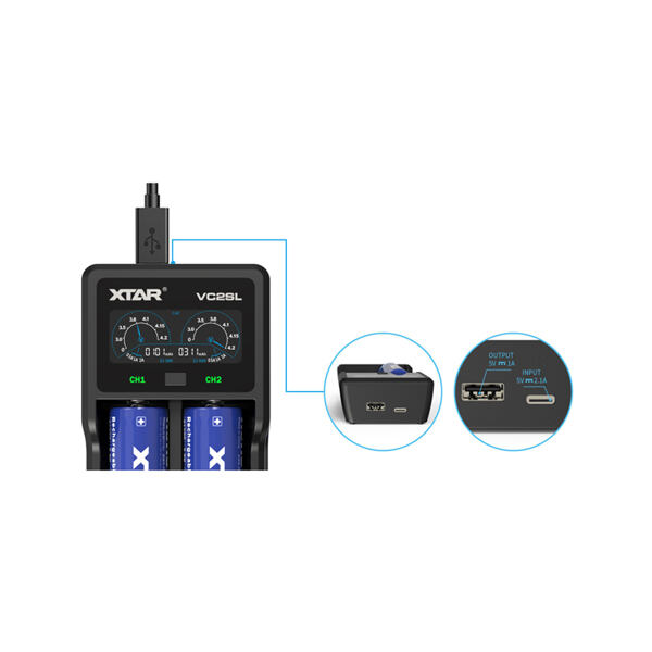 XTAR VC2SL je praktická multifunkční nabíječka článků a dalších baterií od výrobce XTAR. Nabíječka XTAR VC2SL poslouží zároveň také jako nouzová powerbanka díky přidanému výstupnímu slotu USB v zadní části. Disponuje dvěma individuálními nabíjecími sloty. Lze nabíjet dvě baterie současně, případně jednu baterii samostatně. Nabíječka XTAR VC2SL podporuje většinu běžně dostupných článků typu Li-ion, IMR, INR, ICR, Ni-MH a Ni-CD. Ve vrchní části nabíječky se nachází velký a přehledný LCD displej, který zobrazuje všechny potřebné parametry během nabíjení. Na displeji se zobrazuje dobíjecí proud baterií, napětí baterií a kapacita baterií. Během nabíjení pod displejem svítí také červená, nebo zelená dioda, která indikuje, zda je baterie již nabitá, nebo se stále dobíjí. Nabíječka VC2S také nabídne funkci zobrazení chybové hlášky ERR. V případě zobrazení ERR je baterie vložena obráceně, nebo došlo k jejímu zkratu. Tato funkce ušetří váš čas během nabíjení.