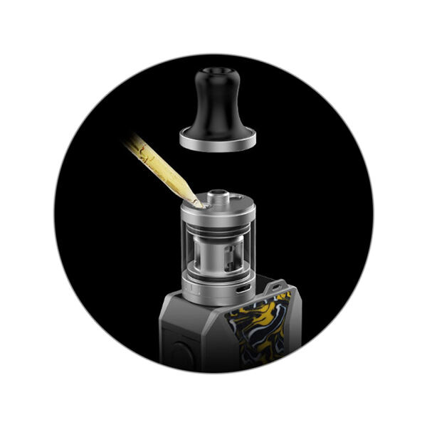 Tank nabídne základní objem 1,8 ml. V případě nutnosti doplnění vás potěší možnost jednoduchého systému vrchního plnění. Jednoduchým pohybem sejmete náustek ve vrchní části a během pár vteřin doplníte e-liquid zpět do tanku.