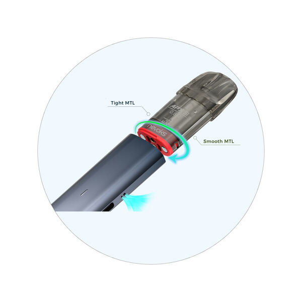 Elektronická cigareta - MTL potah, baterie 1000mAh, objem 2ml, automatické spínání, automatický výkon 8-18W, dobíjení USB-C, inteligentní detekce odporu, tenká konstrukce, hliníková slitina, duální airflow, platforma cartridgí APX.