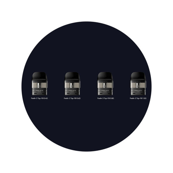 Nevoks Feelin 3 je k dispozici ve dvou variantách, přičemž obě se liší v obsahu balení. Varianta Pod version nabídne nové cartridge Nevoks Feelin 3 s integrovanou žhavící hlavou, objemem 2 ml a praktickým horním plněním s vylamovacím náustkem. V základním balení potom najdete cartridge s odporem 0,4ohm pro RDL a cartridge s odporem 0,6ohm pro MTL vaping. E-cigareta je zpětně kompatibilní také s cartridgemi Feelin 2 a hlavami SPL 10, které si můžete v případě Pod version varianty dokoupit samostatně.