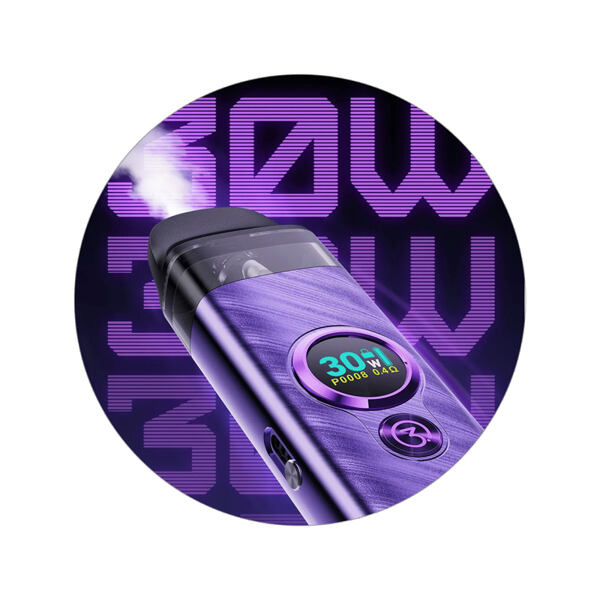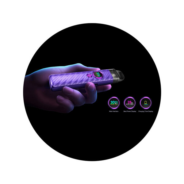 Dominantou celé e-cigarety je jednoznačně displej inspirovaný klasickými hodinkami. Díky kulatému profilu utváří elegantní dojem a příjemně dokresluje další designové prvky celé e-cigarety. Na displeji si navíc můžete nepřetržitě hlídat to, co se s vaší e-cigaretou právě děje a jaké máte nastavené hodnoty. V hlavním rozhraní budete mít přehled o aktuálním výstupním výkonu, stavu baterie, odporu cartridge a počtu potahů. Po připojení nového podu displej automaticky zobrazí doporučený výkon a v případě nabíjení se vám na displeji ukáže zbývající čas do konce nabití.