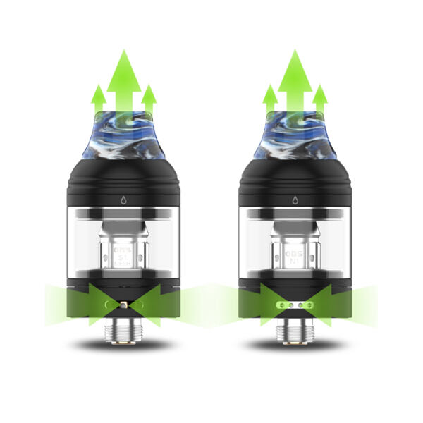 Volbu vzdušnějšího a utaženějšího potahu vám umožní také prvotřídně navržený systém spodního airflow. Ve spodní části se nachází regulační kroužek s řadou menších otvorů pro utažený potah, nebo se širokým otvorem pro vzdušnější potah s větší produkcí páry. Volba je tak pouze na vás. Nyní si můžete své oblíbené klasické šlukování doladit k naprosté dokonalosti.