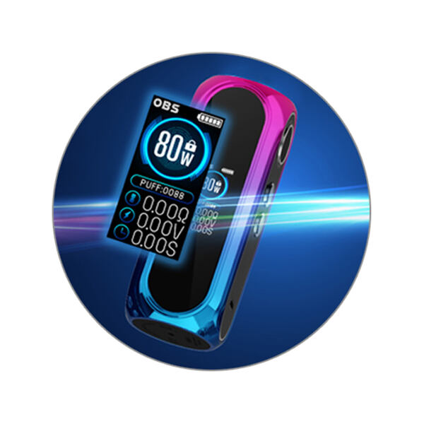 V boční části se nachází obrovský displej s přívětivým uživatelským rozhraním pro snadné nastavení. Na displeji budete mít neustálý přehled o aktuálně nastaveném výkonu, odporu atomizéru, nebo výstupním napětí z baterie. Výkon u modu lze regulovat pomocí bočních regulačních tlačítek v rozmezí 5 - 80 W.