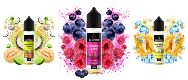 Populární série příchutí Bombo Wailani Juice je zpět, tentokrát v novém balení a s řadou nových příchutí. Výrobce Bombo Liquids ze Španělska přináší okouzlující sérii nepřeberného množství ovocných a osvěžujících příchutí pro jakékoliv roční období. Výrazná a bohatá chuť, promyšlené receptury a originální ovocné směsi, to vše nabídne tato jedinečná série. Prosluněnou řadu ovocných příchutí si můžete vychutnat ve variantě typu shake & vape, do velké lahvičky s příchutí tak stačí pouze dolít bázi, protřepat a začít vapovat bez nutnosti dalšího zrání.