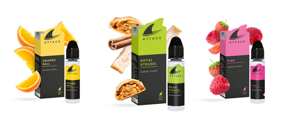Série příchutí Attack (dříve označované jako Shark Attack) od českého výrobce Imperia představuje řadu dokonale harmonických kombinací ovocných plodů a sladkých dezertových složek, které si zamilujete už po prvním ochutnání. Pomeranče, borůvky, lesní plody, nebo jemné štrůdlové těsto a spoustu dalších báječných chutí odhalíte v této jedinečné kolekci shake & vape aromat. Řada Attack byla vyvinuta a vyrobena v laboratořích Imperia. Struktura jednotlivých receptů je postavená tak, aby bylo možné použít namíchaný e-liquid bez potřeby zrání.