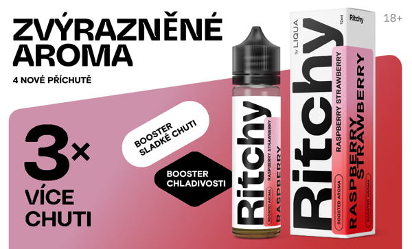 Příchutě Ritchy S&V od evropské společnosti Liqua nabídnou výraznější aroma a skutečně prémiový zážitek při každém potáhnutí. Vychutnejte si tyto jedinečné ovocné směsi a zamilujte se do jejich výrazné, bohaté, plné a nezaměnitelné chuti. Všechny příchutě Ritchy by Liqua jsou vyrobeny na území EU a splňují všechna kritéria pro uvedení na trh. Jsou vyrobeny jen z těch nejkvalitnějších surovin pro vynikající chuťové podání. Příchutě Ritchy jsou dodávány ve velké 60ml lahvičce, ve které se nachází 12ml příchutě. Díky systému shake & vape stačí pouze dolít bázi a začít potahovat bez potřeby zrání.
