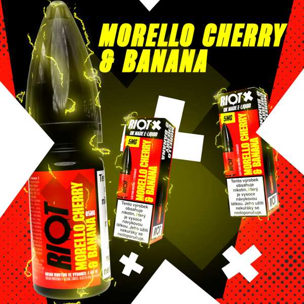 - 1x e-liquid RIOT X Salt Morello Cherry & Banana 10 ml