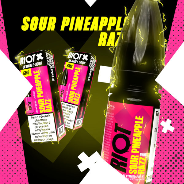 - 1x e-liquid RIOT X Salt Sour Pineapple Razz 10 ml