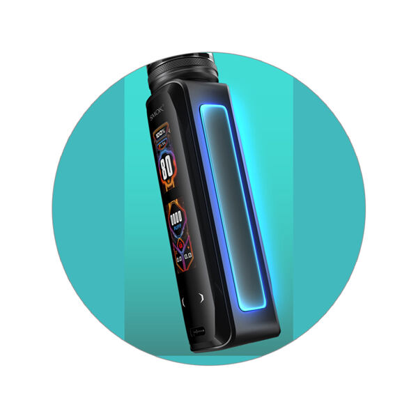 Mod s regulací výkonu a se slotem pro baterii 18650, závit 510, výstupní výkon až 80 W, USB-C nabíjení, dotykový ovládací panel, moderní uživatelské rozhraní, haptická odezva.