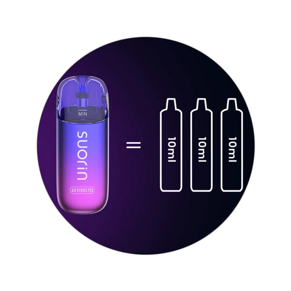 Suorin Air Hybrid Pod Kit je praktická hybridní elektronická cigareta, která kombinuje výhody tradičních plnitelných pod systémů a jednorázových e-cigaret. Oproti jednorázovým e-cigaretám nabídne možnost opětovného plnění a dobíjení, přináší tak značnou úsporu peněz a je šetrnější také k životnímu prostředí. Jedna elektronická cigareta Suorin Air Hybrid Pod Kit je ekvivalentem až osmi jednorázových e-cigaret s objemem 2ml.