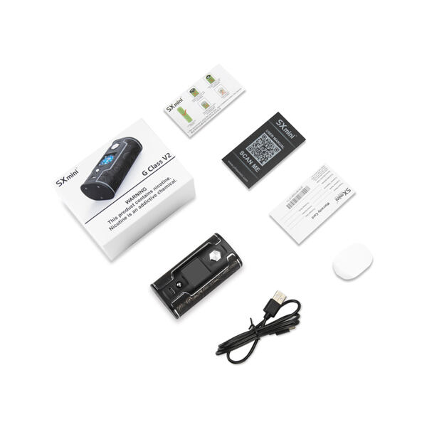 Mod SXmini G Class V2 láká nejen na pokročilé uživatelské funkce, ale v prvé řadě na excelentní a nádherný design. Tělo je vyrobeno z kombinace kovových slitin, jmenovitě potom ze zinkové slitiny a hliníkové slitiny. Všechny části modu jsou do detailu vybroušené a všechny součásti na sebe perfektně doléhají. Samozřejmostí jsou také co nejmenší rozměry 94 x 47,7 x 34,3 mm pro pohodlné užívání. Mod nabídne také populární zaoblené hrany pro perfektní ergonomii během užívání.
