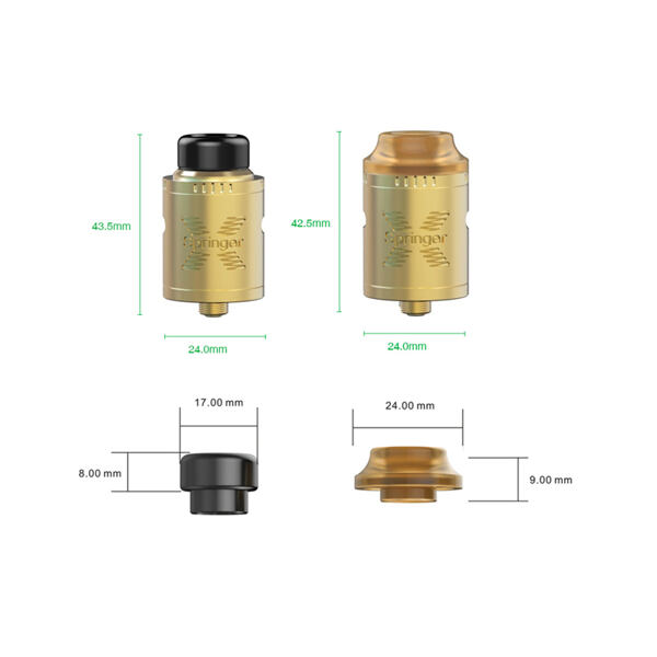 Tigertek Springer X skvěle doplňuje sérii RDA atomizérů od stejnojmenného výrobce, přidává však i něco navíc. Těšit se tak můžete například na větší kapacitu pro e-liquid, než bývá u dokapávacích atomizérů běžné. Zároveň si můžete sami určit, co vám vyhovuje - single coil build, dual coild build, jemnější vaping s průměrově menším náustkem, nebo velká produkce páry se širokým ultemovým náustkem?