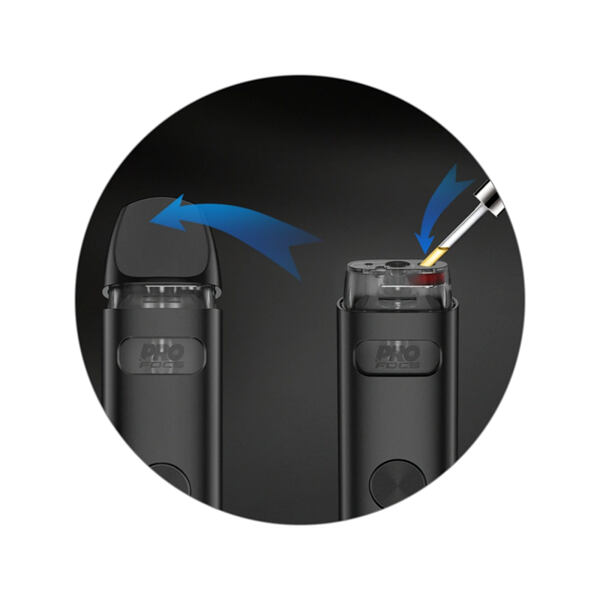 Cartridge ve vrchní části nabídne objem 2 ml. Její nespornou výhodou je potom jednoduchý mechanismus plnění. Jednoduše postačí odklopit náustek ve vrchní části a začít ihned plnit. Celý proces plnění zabere jen pár vteřin a cartridge nebudete muset během plnění ani odpojovat od těla baterie. S touto metodou si můžete e-cigaretu bez problému doplnit kdekoliv a kdykoliv.