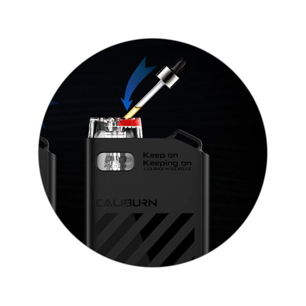 O stavu e-liquidu uvnitř cartridge budete neustále informováni díky postrannímu průhlednému průzoru. Jakmile bude docházet e-liquid, postačí z cartridge sejmout náustek zatlačením do strany. Poté již můžete začít plnit. Pro samotný proces plnění nebudete muset cartridge ani odpojovat. Naplněno máte během pár vteřin, poté se můžete opět věnovat vapování.