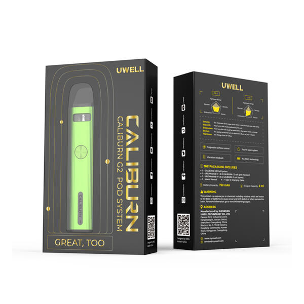 Novinkou je přítomnost unikátního bezpečnostního prvku. Zařízení disponuje haptickou vibrační odezvou, která vás v případě závady informuje mírným zavibrováním. Tato vibrace se projeví například v případě zkratu, nebo při nízkém napětí baterie, případně při překročení limitu pro jeden potah. Budete tak mít rychlý přehled o tom, co se se zařízením právě děje. Cartridge ve vrchní části je vyráběna s technologií Pro-FOCS, která klade důraz na maximálně věrné a bohaté podání chuti. Cartridge disponuje objemem 2 ml a nabídne jednoduchý systém vrchního plnění pouhým sejmutím náustku. Je kompatibilní s tělísky UN2 Meshed-H, přičemž v základním balení na vás čekají dvě tělíska s mesh pletivem a odpory 0,8 ohm a 1,2 ohm. Nabídnou skvělý výběr mezi utaženým MTL potahem a vzdušnějším MTL potahem připomínajícím RDL. Uwell Caliburn G2 Pod Kit je všestranné zařízení, jehož jednoduchost a praktičnost vás ohromí.