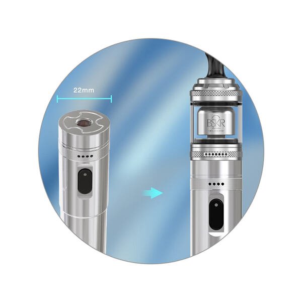 Pro pokročilejší uživatele si výrobce Vandy Vape připravil zajímavou vychytávku. V případě, že vám nebude naplno vyhovovat konstrukční systém AIO, postačí do vrchní části umístit adaptér 510. Následně tím rozšíříte kompatibilitu také na klasické clearomizéry se stejným typem závitu. E-cigareta si tak snadno poradí s jakýmkoliv typem atomizéru, ať už se jedná o motací DIY atomizéry, nebo ty tradiční, díky adaptéru budete moci zkoušet všechny. Průměr vrchní části činí 22 mm.