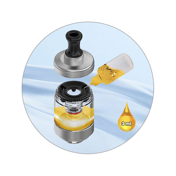 Objem tanku ve vrchní části činí 3 ml. Tank si proto hravě a bez problému poradí s intenzivním mnohahodinovým používáním bez potřeby dalšího doplňování. Pokud vám dojde e-liquid, jednoduše odšroubujete vrchní top cap a během pár vteřin máte opětovně doplněno. Tento oblíbený způsob plnění vás zaručeně nikdy nezradí, zejména potom na cestách.