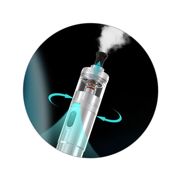 Přímo nad spínacím tlačítkem se nachází kroužek pro regulaci airflow, který slouží pro plynulé nastavení přívodu vzduchu do atomizéru během potahu. Otáčením kroužku si tak přizpůsobíte velikost vzduchových otvorů a ovlivníte tím výslednou tuhost potahu. Ať už preferujete volnější, nebo utaženější potah, s tímto modelem si snadno vyzkoušíte obě varianty.