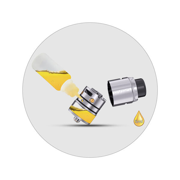 Vandy Vape Pyro V4 nabídne proti předchozí generaci výrazně větší zásobník pro e-liquid. Do tanku totiž můžete doplňovat až 5 ml e-liquidu, díky čemuž atomizér oceníte zejména při intenzivnějším každodenním vapování. Po sejmutí vrchního top capu můžete začít plnit pomocí bočního plnicího otvoru, do plné kapacity tank doplníte za pár vteřin.