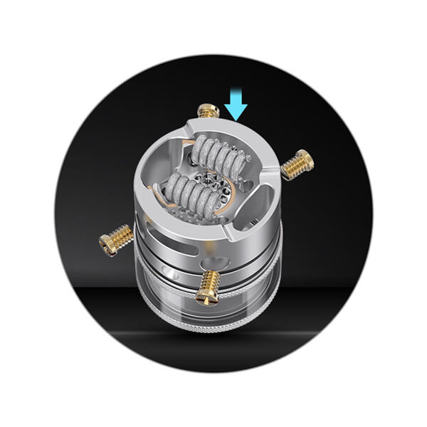 Celý atomizér Vandy Vape Pyro V4 RDTA zvládnete hravě nabuildovat během několika málo minut. Inovativní základna pro dvě spirálky umožňuje snadné a rychlé boční dotažení pomocí čtyř šroubků. Délku nožiček spirálek si jednoduše upravíte díky nástroji v základním balení, s instalací si poradí také začátečníci v oblasti DIY vapingu. Na pokročilé uživatele potom čeká komfortní buildování s dostatkem místa pro osazení většími spirálkami i větším množstvím vaty.