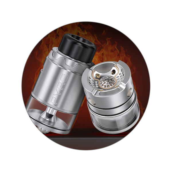 Série atomizérů Pyro se obecně pyšní vynikajícím podáním chuti při vapování jakéhokoliv e-liquidu. Nejinak tomu je i ve verzi Pyro V4. Jedná se o špičkový RDTA atomizér, který výborně prokreslí jakoukoliv směs, nebo jednosložkové e-liquidy. Díky celé řadě menších vzduchových otvorů u základny je výsledná chuť příjemně vyvážená, jemná a bohatá, vychutnáte si z něj naprosto cokoliv.