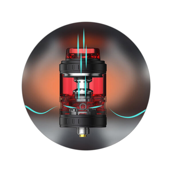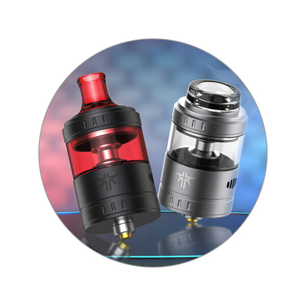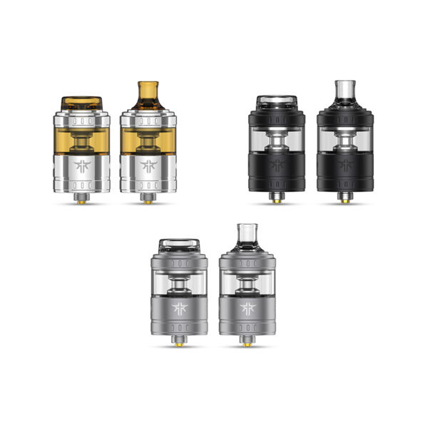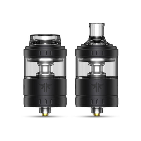 RTA atomizér - MTL/DL/RDL potah, objem 4,5 ml, základna pro jednu spirálku, závit 510, průměr 24 mm, horní plnění, spodní regulace airflow, dva typy top capu, vyměnitelné komory, snadná instalace.