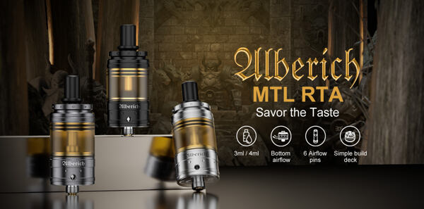 Vapefly Alberich MTL RTA je vynikající volbou pro všechny milovníky chutného MTL potahu. Díky širokým možnostem nastavení airflow a pečlivě navržené vnitřní konstrukci zprostředkuje ideální tuhost potahu s maximálním důrazem na výrazný hit a prokreslenou chuť. O co nejlepší přenos páry do úst se potom postará podlouhlý úzký náustek s uchycením typu 510.