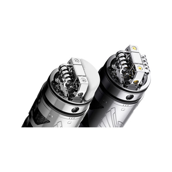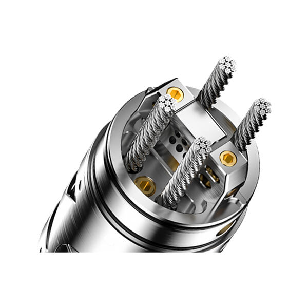 RTA atomizér - DL potah, objem 7 ml, základna pro dvě spirálky, závit 510, průměr 25,2 mm, boční plnění, boční regulace airflow, inovativní vrchní umístění základny, zásobování skrz nerezová lanka, kvalitní zpracování.