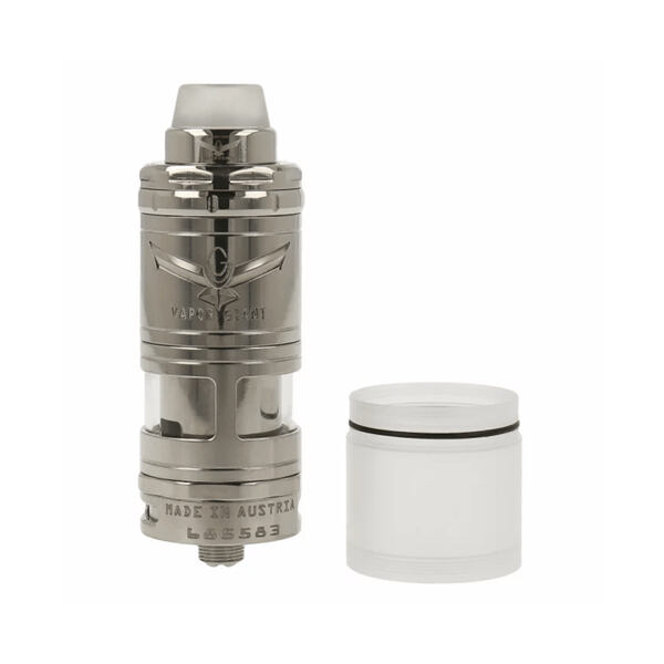 Vapor Giant V6S RTA 2020 Edition je přepracovanou verzí původního prémiového atomizéru V6 S. Opět se můžete těšit na vysoce kvalitní zpracování a konstrukci z nerezové oceli (1.4404) a příjemný průměr 23 mm pro funkčnost s většinou modů na trhu. Nesmí chybět otočný štít tanku 360° a obrovský objem, který se zastavil až na 7ml, pokud atomizér osadíte PEI mléčným tankem v balení.