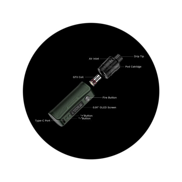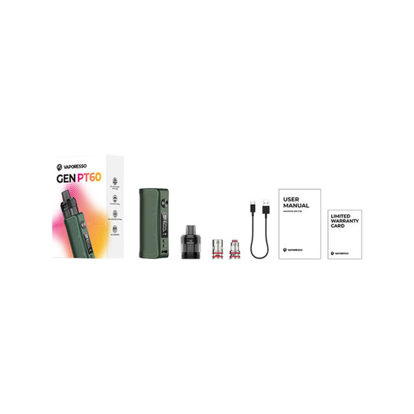 E-cigareta Vaporesso GEN PT60 Pod Kit je vhodná jak pro naprosté začátečníky, tak také pro pokročilé uživatele. Nabídne přehledné uživatelské rozhraní a snadné ovládání. V přední části se nachází ovládací panel, který tvoří velké žhavící tlačítko, dvě malá regulační tlačítka a přehledný OLED displej. U e-cigarety si můžete pohodlně regulovat výstupní výkon v rozpětí 5 - 60 W. Všechny potřebné parametry pro používání se potom zobrazují na displeji.