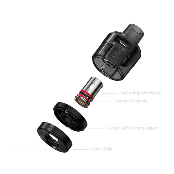 Ve vrchní části se nachází nová cartridge / tank s názvem Vaporesso X Tank Pod. Tato cartridge vyniká hned v několika ohledech. Zejména potom nabídne velký objem 4,5 ml, zaujme však také inovativním dvojím vrchním systémem kombinujícím regulaci airflow a plnění. Všechno tak najdete pohodlně na jednom místě, provoz je nesmírně snadný a intuitivní.