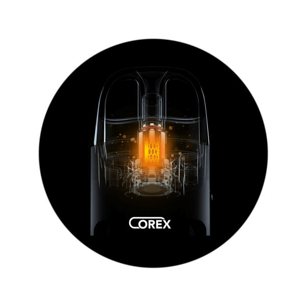 O co nejlepší chuťové podání a dlouhou životnost žhavících tělísek se postará inovativní technologie COREX, která na vás čeká v jádru zařízení. Tělíska jsou opatřena speciálně navrženým druhem pletiva a luxusní přírodní vatou pro efektivní sání e-liquidu a vyváženou chuť při každém potahu. Tělíska nabídnou také velkou odpařovací plochu pro maximální prokreslení každého e-liquidu při potahu, v zařízení LUXE XR MAX vynikne každý váš e-liquid na maximum.
