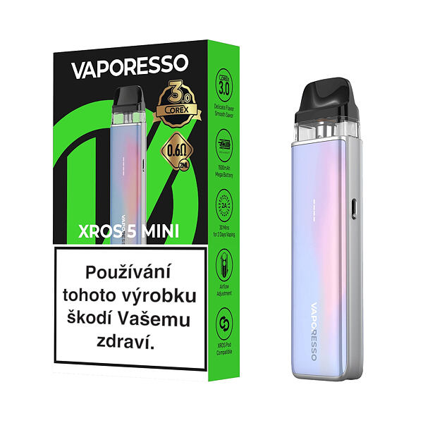 Vaporesso XROS 5 Mini Pod Kit je nádherně zpracovaná elektronická cigareta s bytelnou konstrukcí a futuristickými barevnými variacemi. Na první pohled upoutá svými přívětivými rozměry, díky čemuž ji snadno schováte do kapsy a perfektně se vám bude držet také v dlani při vapování. Paleta dostupných barev je opravdu široká a zaručeně si vybere každý dle svého vkusu.