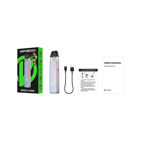 Vaporesso XROS 5 Mini Pod Kit je ideální volbou zejména pro začínající uživatele a nenáročné zákazníky, kteří sází na osvědčeného výrobce, jednoduché a praktické funkce a maximum chuti. Ve všech těchto bodech hravě splní vaše očekávání a vy si tak můžete užívat vaping v moderním hávu a bez jakýchkoliv starostí.