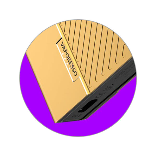 Uvnitř kapesního těla se nachází integrovaná baterie s obrovskou kapacitou 1000 mAh. S touto kapacitou se můžete těšit na dlouhé hodiny nerušeného vapingu a u občasnějších vaperů až na celodenní výdrž. Baterii budete moci kdykoliv pohodlně dobít, ve spodní části se nachází konektor pro připojení kabelu typu USB-C. Lze dobíjet proudem až 1 A.