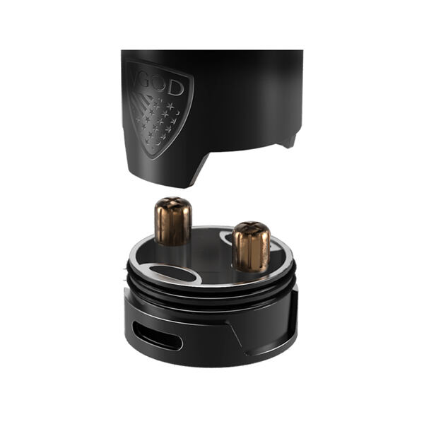 Po konstrukční stránce není co vytknout. Ve spodní části naleznete vzduchové otvory pro přísun vzduchu ke spirálkám. Tyto široké otvory zaručí okamžité odpaření e-liquidu od spirálek, čímž docílíte skvělé chuti. Na těle je vyrytý štít s logem VGOD, který skvěle dokresluje výsledný dojem z celého atomizéru.