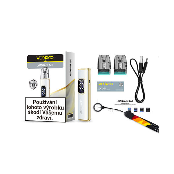Argus G3 Pod Kit září jako jasná hvězda v nabídce kompaktních pod systémů Argus renomovaného výrobce VooPoo. S inovativní technologií iCOSM Code 2.0 a přepracovanými cartridgemi Argus Pod Top Fill V2 dodá extrémní výdrž, skvělou životnost a maximum dokonalé a prokreslené chuti. O intenzivní používání se stará vysokokapacitní integrovaná baterie 1500 mAh s podporou moderního rychlého nabíjení USB-C 5V / 2A. Vychutnejte si plnohodnotný požitek z vapingu díky překrásnému metalickému tělu, masivnímu TFT displeji a díky mnoha praktickým prvkům regulace a nastavení pro úpravu vašeho požadovaného potahu. Argus G3 Pod přináší vaping nové generace.