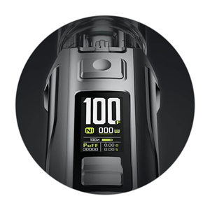 Elektronická cigareta - DL potah, baterie 3000mAh, objem 6,5ml, manuální spínání, výkon 5-100W, dobíjení USB-C, regulace air-flow, displej, TC režimy, Smart režim, čipset GENE TT 2.0, zvýšená odolnost IP68, podpora 3A nabíjení, manuální zámek modu, vrchní plnění, tělíska VooPoo TPP.