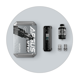 O bezproblémový chod celého modu Argus MT se stará čip GENE TT 2.0. Díky tomuto čipu budete moci využívat jeden ze čtyř praktických režimů a zároveň se můžete těšit na celou řadu bezpečnostních prvků pro hladký provoz. Všechny parametry a hodnoty si nastavíte rychle a snadno na displeji v přední části. Pro ovládání poslouží dvě regulační tlačítka a velké spínací tlačítko. Mod nabídne pokročilý režim SMART, který efektivně měří odpor tělíska a nastaví potřebný výkon při žhavení za vás. V režimu RBA si budete moci libovolně upravovat výkon v rozmezí 5 - 100 W. Milovníci teplotních režimů se mohou těšit na TC (Ni, SS, Ti) a příznivci prudkého náběhu žhavení se mohou těšit na režim TURBO, který zesílí nastavený výkon pro první vteřinu potahu o 25%. Na předním panelu přímo u displeje se potom nachází manuální zamykací tlačítko pro snadné a rychlé uzamčení modu v případě přenášení. V kompletní sadě najdete také oblíbený DL clearomizér s názvem Maat New Tank. Tento clearomizér disponuje obrovským objemem 6,5 ml, nabídne unikátní spodní airflow systém a praktické vrchní plnění. Je kompatibilní s rodinou žhavících tělísek TPP, v balení na vás potom čekají tělíska TPP-DM2 (0,2 ohm) a TPP-DM4 (0,3 ohm). VooPoo Argus MT Kit elegantně doplňuje celou sérii zařízení Argus a přináší zase něco nového.