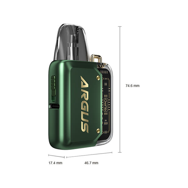 Futuristický design, prvotřídní výkon, extrémně rychlé nabíjení a inovativní čipset - VooPoo Argus P1 Pod Kit je stylová a luxusně zpracovaná elektronická cigareta typu pod, která padne přesně do kapsy. Na první pohled zaujme zejména svým futuristickým zpracováním. Jedna polovina těla nabídne kovovou konstrukci ze zinkové slitiny, přičemž druhá polovina disponuje polykarbonátovým transparentním krytím, můžete tak nahlédnout do vnitřní struktury celé e-cigarety a během užívání si bez problému prohlížet také celý čipset. Tělo je osazeno čipem GENE.AI 1.2, který přináší řadu inovativních funkcí v čele s automatickým spínáním potahu a automatickým nastavením intenzity potahování na základě tlaku vyvíjenému během potahu. Díky této technologii pracuje celé zařízení mnohem efektivněji a zachovává si delší životnost baterie.
