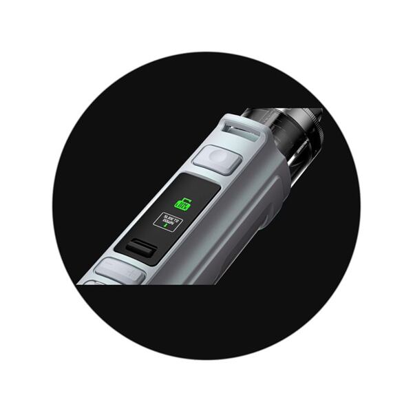V robustním těle nesmí chybět ani integrovaná baterie s ohromující kapacitou. Ta činí krásných 3000mAh, zařízení tak hravě zvládne uvedený vysoký výstupní výkon a intenzivní vapování. Baterii si můžete kdykoliv pohodlně dobít pomocí portu USB-C, který se nachází na předním panelu. Dobíjecí port navíc disponuje speciální silikonovou krytkou, která ho chrání před usazováním prachu.