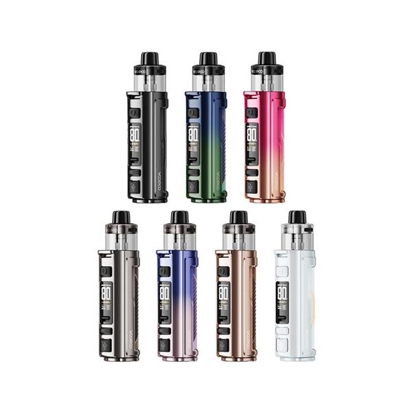 Elektronická cigareta - DL potah, baterie 3000mAh, objem 5ml, manuální spínání, výkon 5 - 80W, dobíjení USB-C, regulace air-flow, displej, režim SMART, tři režimy výstupu, čipset GENE.TT 2.0, dynamický zámek, platforma VooPoo PnP-X.