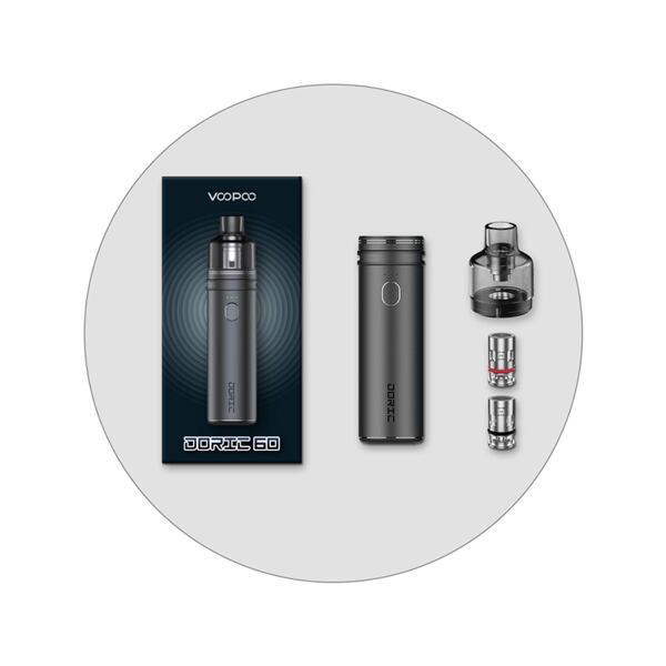 Výrobce VooPoo uvádí na trh také většího a výkonnějšího sourozence modelu Doric 20. Jedná se o e-cigaretu VooPoo Doric 60 Pod Kit. Čeká na vás větší kapacita baterie, kvalitní kovové zpracování a vysoký výkon. E-cigareta Doric 60 nabídne jednoduchou obsluhu a několik užitečných funkcí, z nichž nejzajímavější je podpora tělísek z platformy PnP. E-cigareta disponuje délkou 113,45 mm a průměrem 26,55 mm. Nabídne tradiční trubkovou konstrukci pro pohodlné užívání a držení v ruce. Uvnitř těla potom najdete integrovanou baterii s kapacitou 2500 mAh, která je určena pro využití také s vyššími výstupními výkony. E-cigareta pracuje s výkonem v rozsahu 5 - 60 W, který se nastavuje automaticky dle zvoleného tělíska. Během potahování si můžete zvýšit intenzitu potahu přepínáním jednoho ze tří režimů výstupu pomocí tlačítka.