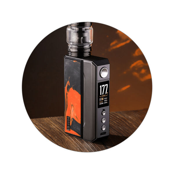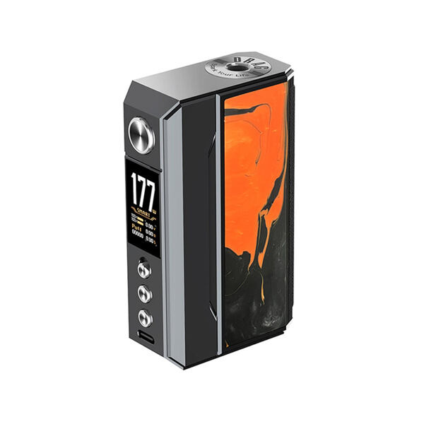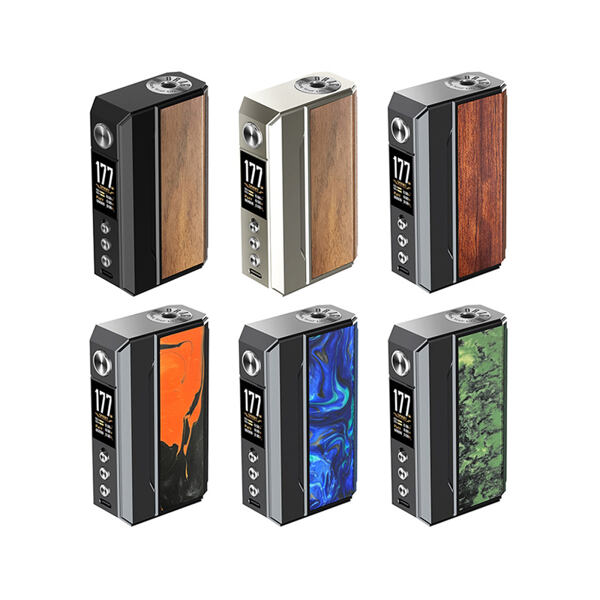 VooPoo Drag 4 Mod je již čtvrtou generací vlajkové lodě Drag, série pokročilých gripů výrobce VooPoo. Na pomyslný vrchol nabídky výrobce ho potom řadí celá řada prvků, mezi nejvýznamnějšími lze jmenovat hlavně kvalitní čip GENE.TT 2.0, podporu extrémně rychlého nabíjení 3A, nebo široký výběr režimů a možnost konfigurace manuálního QS zámku. Při prvním seznámení s gripem Drag 4 vás však zaujme zejména jeho design. Tradiční box mod tělo s rozměry 89 x 52.4 x 25.4 mm je vyrobeno z kombinace zinkové slitiny a kůže na zadním panelu. Boční panely potom zdobí tři rozdílné materiály dle barevného zpracování - resin, palisandrové dřevo, nebo ořechové dřevo. Tělo modu s překrásným a luxusním designem ukrývá slot pro vložení dvou baterií typu 18650, které se postarají o extrémní výkon, jenž dosahuje až 177 W. Baterie můžete pohodlně dobíjet přímo v modu prostřednictvím 5V / 3A USB-C portu v přední části.