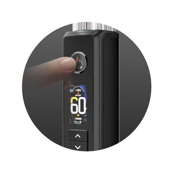 Doménou hlavního ovládacího panelu je zmíněné kapacitní tlačítko, dvě praktická regulační tlačítka a krásný celobarevný displej TFT s úhlopříčkou 0.96". Díky rozměrnému displeji vám při vapování neunikne žádná informace. Všechny potřebné parametry jsou krásně čitelné a displej umožňuje hladké a bezproblémové nastavení všech hodnot i naprostým začátečníkům, kteří se s pokročilejšími zařízeními teprve učí.